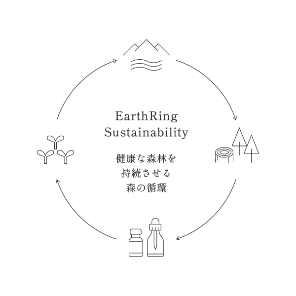 EarthRingの香りづくりは、素材選定から蒸留、調香まですべて自社で行います。蒸留技師と調香師、それぞれのスペシャリストが日々素材と向き合い、その魅力を最大限に生かす方法を探ります。